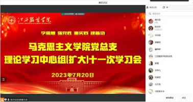 为深入开展学习贯彻习近平新时代中国特色社会主义思想主题教育,进一步加强学院教职工暑期政治理论学习,720午,milan米兰体育官网通过线上+线下相结合的方式召开党总支理论学习中心组(扩大)第十一次学习会。学院党总支副书记陈洋安在清源2栋6楼会议室主持学习会,学院各支部党员、思政课教师通过线上腾讯会议参加学习会
