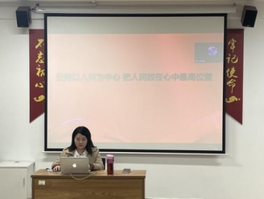 魏园园同志结合中国共产党的发展历程揭示了“为什么必须坚持以人民为中心”“如何理解不断实现人民对美好生活的向往”两个方面深入浅出解读了“人民对美好生活的向往是党的奋斗目标”,详细介绍了党为推动人的全面发展、实现全体人民共同富裕所做的努力。