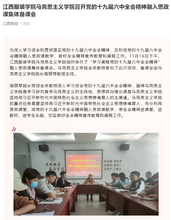 新闻链接:江西思政:milan米兰体育官网milan米兰体育官网召开党的十九届六中全会精神融入思政课集体备课会