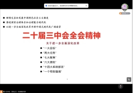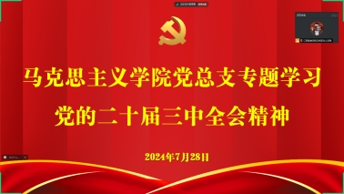 8月18日,思想政治教育教研室党支部召开支部党员大会,支部书记贺松兰同志组织全体党员同志深入学习习近平总书记重要讲话精神以及党的二十届三中全会精神。贺松兰同志强调,学习好宣传好贯彻好党的二十届三中全会精神是当前和今后一个时期的一项重大政治任务。思政课教师要学深悟透,在教学、科研、育人工作中落实全会精神。她带领支部同志们重点学习了“进一步全面深化改革的主题、目标、任务、重大原则、重大举措、根本保证等重要内容。”通过深入浅出的讲解,与会党员对会议精神有了更加清晰、深刻的理解。大家一致认为,《中共中央关于进一步全面深化改革、推进中国式现代化的决定》既是党的十八届三中全会以来全面深化改革的实践续篇,也是新征程推进中国式现代化的时代新篇,是我们党历史上又一重要纲领性文献。大家纷纷表示,将持续学习领会全会精神的核心要义和思想精髓,深学细悟笃行习近平总书记关于全面深化改革的一系列新思想、新观点、新论断,将党的二十届三中全会精神有效融入新学期思政课堂,用党的创新理论成果培养担当民族复兴重任的时代新人。