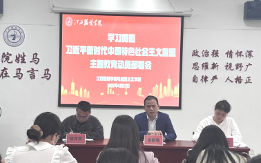 2023年4月27日下午,milan米兰体育官网学习贯彻习近平新时代中国特色社会主义思想主题教育动员部署会在清源2栋6楼会议室召开,校党委副书记唐新强出席会议并讲话。学院领导班子成员、各党支部党员、思政课教师参加会议,会议由学院党总支副书记陈洋安同志主持并作动员讲话。