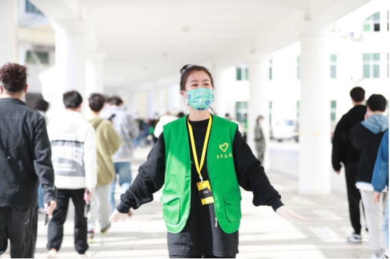 这次核酸检测的志愿服务工作主要由我们的各校级学生组织的成员组成,从团委、学生会、青总会到社团事务中心、艺术团、国旗护卫队,从场外秩序维护到场内健康码的扫描,从第一次核酸检测80名学生志愿者到今天150名志愿者,甚至还有许多同学自主报名参与进来的,我们志愿者的工作热情有增无减,工作效率越来越高!他们真正用行动诠释“江服骨干,敢挑重担!”