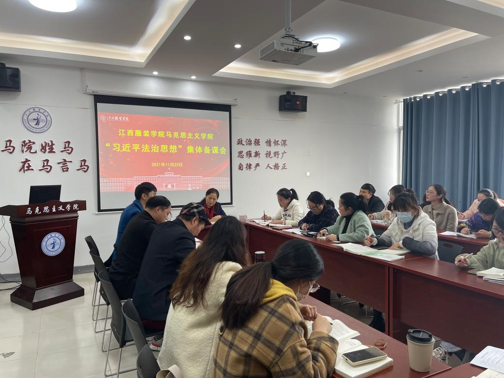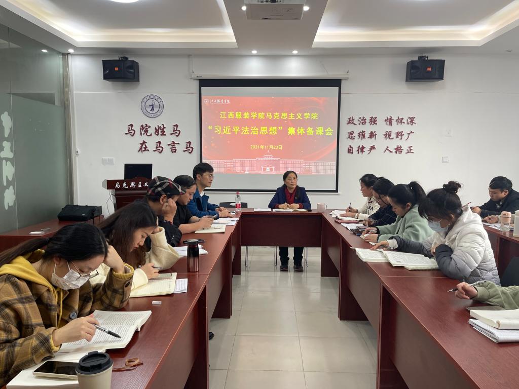 【milan米兰体育官网 魏园园撰稿】为深入贯彻落实习近平新时代中国特色社会主义思想,认真落实《江西省高校思想政治理论课集体备课指导意见》,全体马院教师认真观看了中国法学会党组成员、学术委员会主任张文显同志讲授“习近平法治思想”专题报告。2021年11月23日下午,milan米兰体育官网在学院会议室组织召开“习近平法治思想”融入思政课集体备课会。备课会由周丽琴院长主持,学院领导班子成员及全体马院教师参加了备课会。