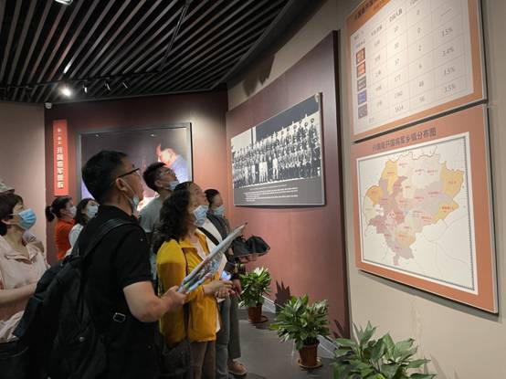 下午,教师们来到何屋,这里是赣南省苏维埃政府旧址,也是毛泽东来于都时的居住之地。1934年9月中旬,毛泽东从瑞金来到于都,就住在何屋东厢房。何屋面积600余平方米,作为政府所在地,设有内务部、财政部、国民经济部、土地部、粮食部、劳动部、教育部、裁判部等多个部门,因而显得逼仄狭小了许多。这里既是办公的场所也是生活的地方,所有的屋子里家具都十分朴素简单,当时条件的艰难困苦可见一斑。在这样的条件下,当时的苏维埃政府开展筹粮扩红、征调伕子、坚壁清野等工作,在短短几个月时间内,筹集粮食18万担,筹款44000多元,扩红14000多名,还筹集了大量的被服、草鞋和果品支援红军,为掩护和支援中央机关和红军主力顺利集结、安全突围做出了不可磨灭的贡献。屋内展厅详细记录了赣南省苏维埃政府的革命活动,教师们频频驻足,仔细阅读、观看。教师李思雅说:“走在何屋,到处都看得见革命前辈的足迹,他们的故事让人深思,他们的精神让人敬仰。“