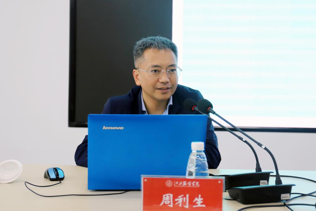 受聘仪式后,周利生教授为在座师生宣讲党的十九届五中全会精神。周利生从全会的新发展阶段、新发展理念、新发展格局等重大问题进行了深入的解读。从认清和把握进入新发展阶段的重大意义、形势变化、重要特征、机遇挑战、有利条件、目标任务和战略构想等方面,全面系统地阐释了党的十九届五中全会精神。他指出,党的十九届五中全会,是在我们党全面建成小康社会胜利在望、全面建设社会主义现代化国家新征程即将开启的重要历史时刻,召开的一次十分重要的会议。全会通过的“十四五”规划《建议》是开启全面建设社会主义现代化国家新征程、向第二个百年奋斗目标进军的纲领性文件。习近平总书记在全会上的重要讲话,进一步升华了我们党对经济社会发展规律、社会主义建设规律的认识,为推动高质量发展、构建新发展格局,夺取全面建设社会主义现代化国家新胜利提供了科学指南和根本遵循。