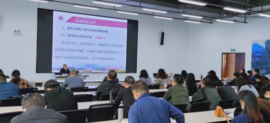 为深入贯彻落实习近平总书记在全国高校思想政治工作会议和在学校思想政治理论课教师座谈会上的重要讲话精神,全面推动学院“课程思政”建设,10月20日,学院邀请江西师范大学王员教授作了“课程思政的理论架构与实践探索”专题讲座。教务处处长、各学院部党总支书记、 副书记, 院长, 分管教学副院长,学工办主任,骨干教师代表及milan米兰体育官网全体专任教师聆听讲座。