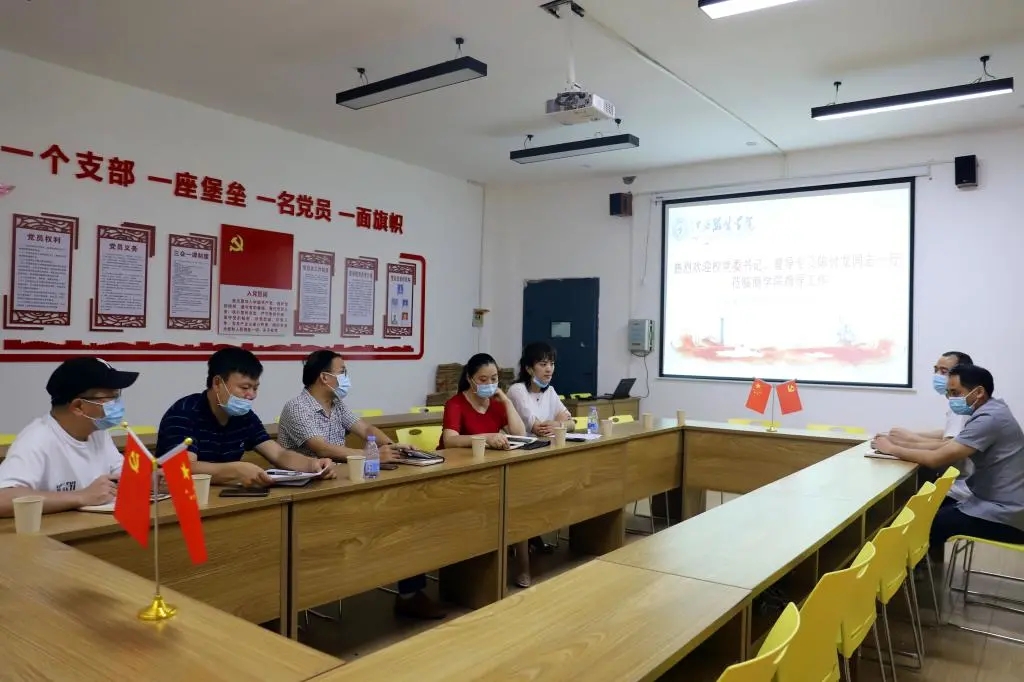 在调研过程中,陈付龙书记对基层党建和思想政治工作提出了四点要求:一是树牢“四个意识”,以实际行动做到“两个维护”。他指出,全体党员干部要认真学习贯彻习近平新时代中国特色社会主义思想和党的十九大、十九届四中全会和2020年全国两会精神,自觉用党的创新理论武装头脑,做到学思用贯通、知信行统一,将“两个维护”体现在实际行动中。二是突出政治标准和政治功能,扎实推进党的组织建设。他指出,各基层党组织要认真贯彻新时代党的组织路线,以党的政治建设为统领,牢固树立大抓基层鲜明导向,认真落实基层党建的主体责任,落实“三会一课”、主题党日、民主评议党员等制度,全面增强基层党组织政治功能和组织力。持续抓好党建与思政品牌建设,选树“标杆学院”“样板党支部”等,不断提升新形势下党建工作水平和质量。三是认真履行意识形态工作责任,推动思政工作守正创新。他强调,要牢牢把握意识形态领域的领导权和话语权,准确把握意识形态领域新形势对宣传思想工作带来的新挑战,持续抓好意识形态阵地管理,牢牢掌握宣传舆论主动权,守正创新做好思想政治工作。四是加强师德师风建设。他强调:“上好课就是最好的师德建设”,要求全体党员要不断加强党性修养,把党性锤炼落实到业务工作当中,加强团队建设,营造风清气正的校园环境。