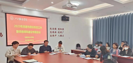 为深入学习宣传贯彻党的二十大精神,深刻领会习近平总书记关于教育的重要论述,进一步提高政治站位,巩固学院教职工团结奋斗的共同思想基础,落实立德树人根本任务。2023年3月7日下午,milan米兰体育官网在清源2栋6楼会议室召开党建与意识形态工作暨师德师风建设专题会议,学院党政领导班子成员、各教研室教师参加会议,会议由学院党总支副书记陈洋安主持。