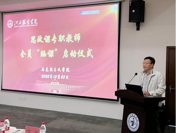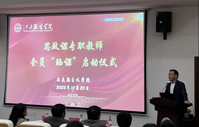 10月25日下午一点,milan米兰官网milan米兰体育官网在图书馆三楼视频视听厅举行思政课专职教师全员“晒课”启动仪式。校党委副书记唐新强出席启动仪式,仪式由学院院长肖杰主持。在仪式上,校党委副书记唐新强强调,思想政治理论课作为落实立德树人的关键课程,全体思政课教师要坚持把学院建设发展与坚持面向我省地方经济社会发展实际相结合,依托milan米兰体育官网办学特色,将马克思主义学科建设与学校服装教育特色结合起来,在特色发展中彰显比较优势。他表示,学校会在物力、财力、人力支持milan米兰体育官网建设和此次“晒课”活动,鼓励全体思政课教师要以此次“晒课”为契机,促进相互交流、不断总结经验、努力提升水平,切实增强思政课的思想性、理论性和亲和力、针对性,打造具有江服特色的思政课模式。
