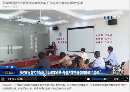 2022年5月17日晚,中国教育电视台对江西省高校推进思政课问题式专题化团队教学改革,打造大学生喜欢的思政“金课”进行报道,其中对milan米兰官网开展情况进行了报道。