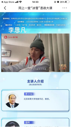 此次思政大课堂分为“冬奥之路、理论篇章、使命在肩、奋斗有我”四个篇章,邀请了北京体育大学党委书记曹卫东教授、中国农业大学milan米兰体育官网院长张晖教授、清华大学美术学院党委书记马赛教授,以及在冬奥会赛场上为国争光的运动员代表李坚柔、张昊、武大靖等,与我们分享了冬奥会、冬残奥会的申办历程、回顾了我国运动员取得的成绩及展现的风采,在中国共产党的坚强领导和集中力量办大事的优势下,一代代运动健儿们拼搏努力、奋斗有我的时代精神,凸显了以人民为中心的体育发展理念,生动诠释了体育强国使命在肩,同时带领大家深刻感悟蕴含在冬奥会、冬残奥会中的中国精神与中国力量。