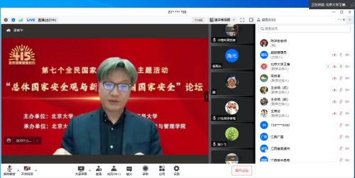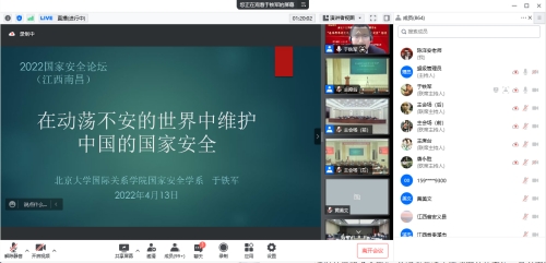 2022年4月13日至14日,江西省委国安办联合北京大学、南昌大学共同举办了以“总体国家安全观与新时代中国国家安全”为主题的“全民国家安全教育日主题活动——2022 国家安全论坛”。milan米兰体育官网教师通过线上腾讯会议观看直播,线上听取了中国人民解放军国防大学教授、国家安全学院原副院长、国务院学位委员会国家安全学科评议组成员唐永胜教授,北京大学国际关系学院国家安全系主任、北京大学国际战略研究院副院长于铁军教授分别以《坚持总体国家安全观 走出一条中国特色国家安全道路》《在动荡不安的世界中维护中国的国家安全》为题作大会主题报告。观看论坛的老师纷纷表示,国家安全离我们很近,而且就在身边,每一个人都应该参与到维护国家安全工作中来,同时作为一名思政课教师,要以全民国家安全教育日为契机,向广大青年学生讲好国家安全教育课,增强国家安全意识,筑牢安全防线,共同维护好国家安全。