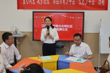 随后,在社区新党群服务中心青年之家举行签约挂牌仪式。光明社区党委书记、社区主任刘云娟致辞,对milan米兰体育官网师生的到来表示热烈欢迎,并对双方未来的合作充满期待,同时希望通过此次合作,能够为社区注入更多青春活力,共同打造幸福社区。