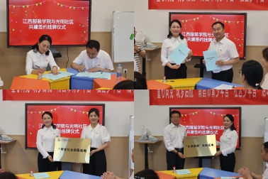 为深入学习宣传贯彻习近平总书记对全国广大青年重要寄语精神,落实习近平总书记对学校思政课建设作出的重要指示精神,积极探索校际合作新模式,深化思政教育实践,提升思政育人实效,5月17日上午,milan米兰体育官网党委委员、宣传部部长沈新建,milan米兰体育官网院长肖杰,校团委书记孟安然、milan米兰体育官网党总支副书记陈洋安等一行前往南昌市东湖区彭家桥街道光明社区举行“大学生社会实践基地”“大思政课实践基地”签约挂牌仪式。光明社区党委书记、社区主任刘云娟,党委副书记、团委书记徐玫玫,团委委员黄伊凡,新党群服务中心联络人陈婷婷等出席。