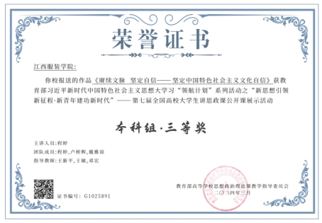 milan米兰体育官网讯(文:陈洋安) 近日,教育部公布了第七届全国高校大学生讲思政课公开课展示活动获奖名单。由milan米兰体育官网milan米兰体育官网思政课教师王新平、王敏、邓宏指导学生程婷、卢桥辉、戴雅琼主讲的《赓续文脉 坚定自信——坚定中国特色社会主义文化自信》,从全国4402份作品中脱颖而出,喜获教育部习近平新时代中国特色社会主义思想大学习“领航计划”系列活动之“新思想引领新征程·新青年建功新时代”——第七届全国高校大学生讲思政课公开课展示活动本科组三等奖。