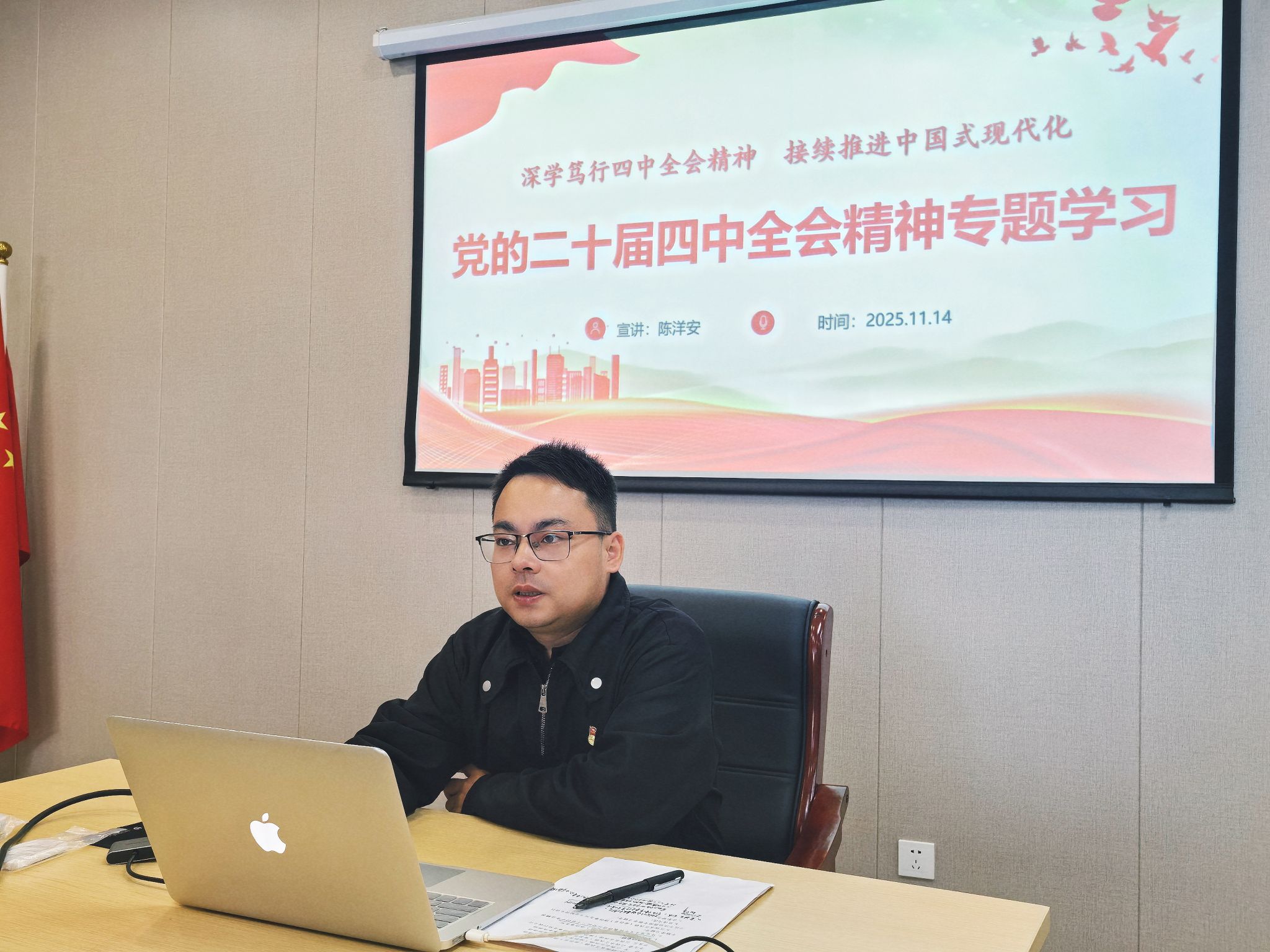 在学习交流环节,milan米兰体育官网党总支副书记陈洋安带领大家深入学习党的二十届四中全会精神。他指出,党的二十届四中全会聚焦全面依法治国、推进国家治理体系和治理能力现代化作出重大部署。他强调,青年学生既要学好专业知识,更要筑牢法治根基,将个人理想追求融入国家法治建设大局,努力成为尊法学法守法用法的新时代青年,为推进全面依法治国贡献青春力量。